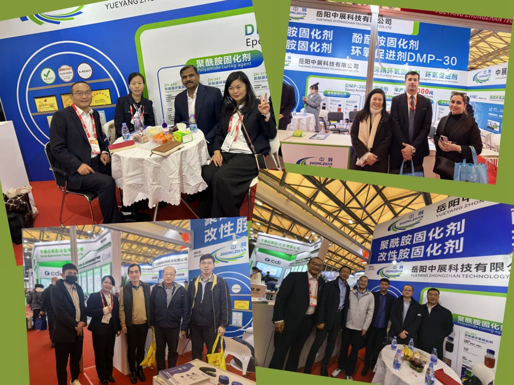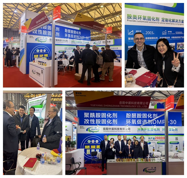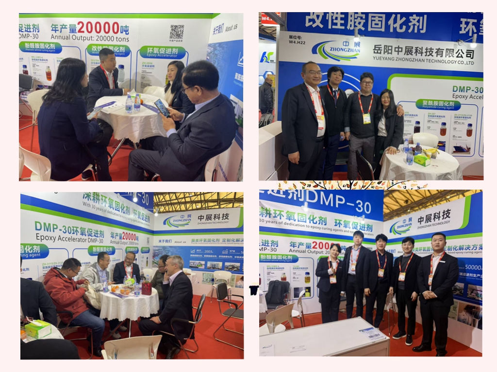 At this industry gala, the booth of Yueyang Zhongzhan Technology maintained extremely high popularity and became the focus of attention among numerous domestic and foreign merchants. For this exhibition, Zhongzhan Technology made a wonderful appearance with its core product matrix, covering a variety of high-performance products such as epoxy accelerators, polyamide curing agents, phenolic amine curing agents, and modified amine curing agents, comprehensively demonstrating the company's R&D strength and product competitiveness in the field of coating additives. Among them, the epoxy accelerator DMP-30 independently developed and produced by the company became the "star product" of the booth due to its outstanding advantages including high purity, stable performance, and strong adaptability. It not only won high recognition from domestic coating and adhesive enterprises but also attracted a large number of overseas merchants to stop for consultation. Foreign businessmen from dozens of countries, including South Korea, Japan, the United Arab Emirates, Pakistan, India, Iran, Russia, Brazil, and Mexico, successively visited the booth and conducted in-depth exchanges with Zhongzhan Technology's business team on product characteristics, application scenarios, and cooperation models. A number of preliminary cooperation intentions were reached on the spot, and the negotiation atmosphere was extremely lively.